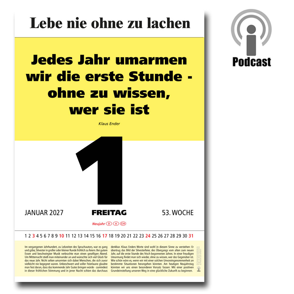 IMPULS-Tagesspruch-Kalender 2027: Hören Sie hier den Kommentar zum Tagesspruch vom 01.01.27 - Ein Zitat von Klaus Ender. Diesen und weitere 320 lesens- und hörenswerte Kommentare enthält der neue IMPULS-Tagesspruch-Kalender! Wenn Ihnen gefällt, was Sie hören, dann bestellen Sie am besten gleich Ihren neuen Spruchkalender durch Klick auf den nachfolgenden Link.